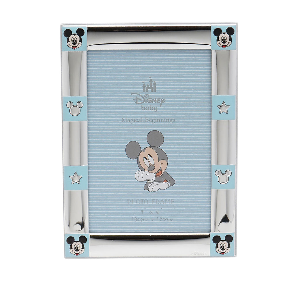 Bring Disney magic home with this charming Mickey Mouse photo frame, perfect for cherished memories. Adorned with Mickey's iconic ears and stars, this silver-plated frame is a must-have for any Disney fan.