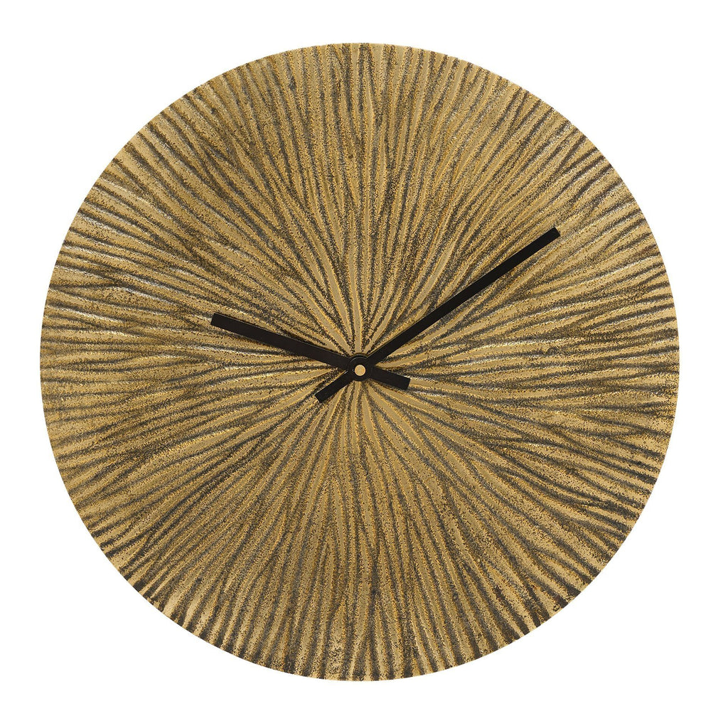 The clock face showcases a wavy lined design, creating an elegant look. With no traditional numerals, this clock embraces a minimalist aesthetic that allows the brass colour and straight black clock hands to take centre stage.
