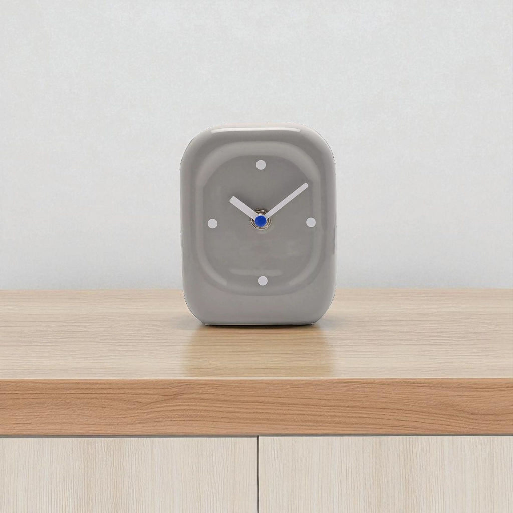 Introduce timeless elegance to your desk with the Interval Porcelain Desk Clock in Grey. This charming analogue clock features a classic grey face with sleek blue accents, creating a stylish and sophisticated look that complements any décor.