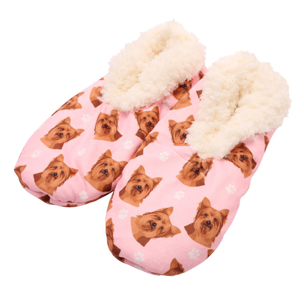 A joyful pair of E & S pets Yorkshire Terrier slippers by Best of Breed.