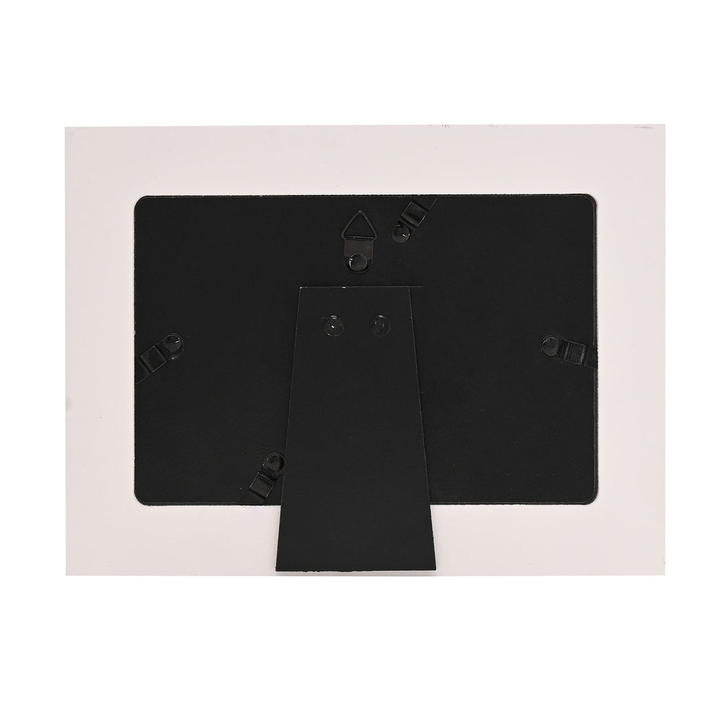 Featuring a classic white finish, this frame suits a variety of interior styles and holds a 6" x 4" photo - ideal for desks, shelves, or mantels. A meaningful gift for newlyweds or a stylish addition to a wedding photo display. With strut for freestanding display or hooks for wall hanging.