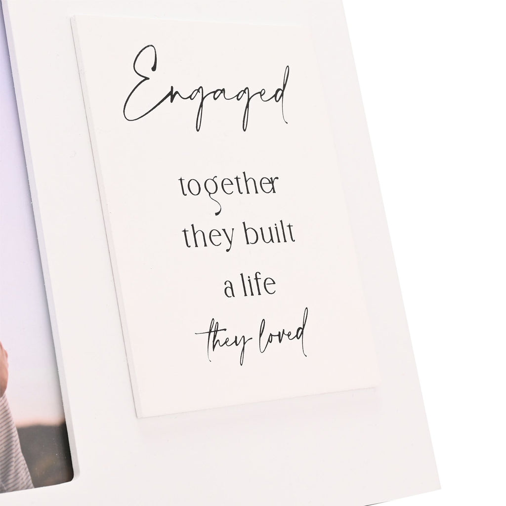 Featuring a touching quote “Engaged, together they built a life they loved” and a heartwarming image, it’s perfect for displaying a favourite photo of the happy couple.
