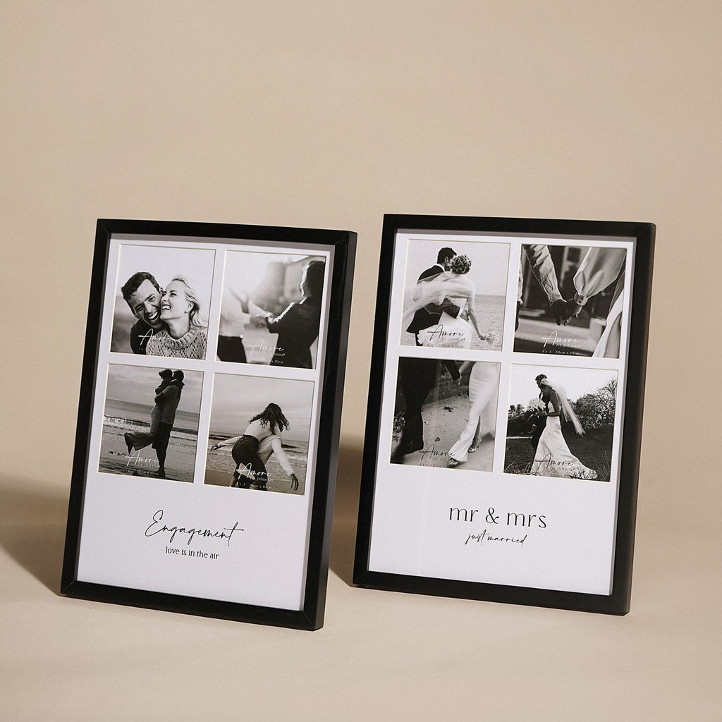 The Amore Black Multi Aperture Photo Frame – Engaged is a stylish way to celebrate a meaningful milestone.
