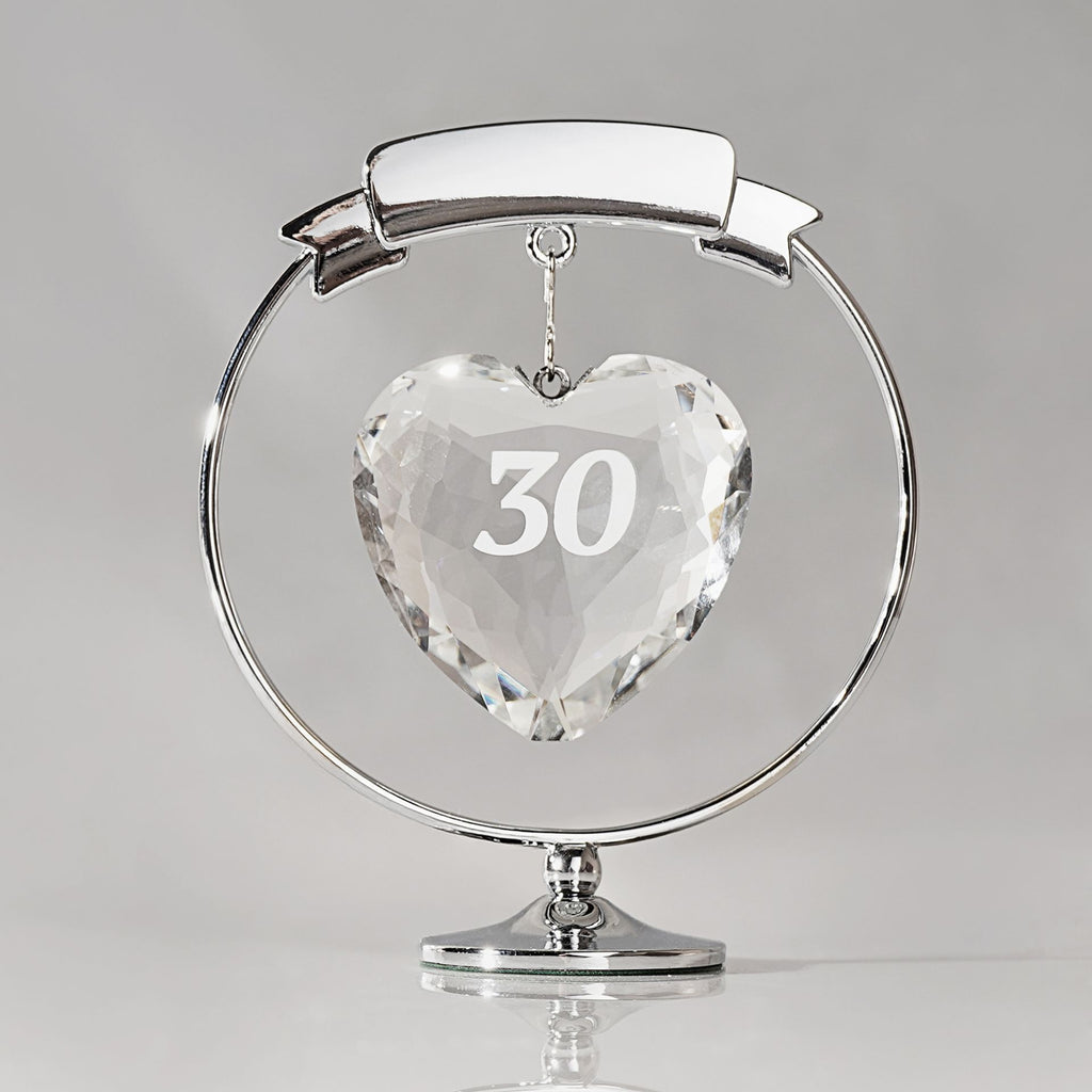 Each piece features a beautifully faceted crystal heart suspended in a polished chrome frame, with milestone numbers delicately engraved - from 21 to 90. Whether it’s a birthday or anniversary, these elegant ornaments are perfect for gifting or as a keepsake.