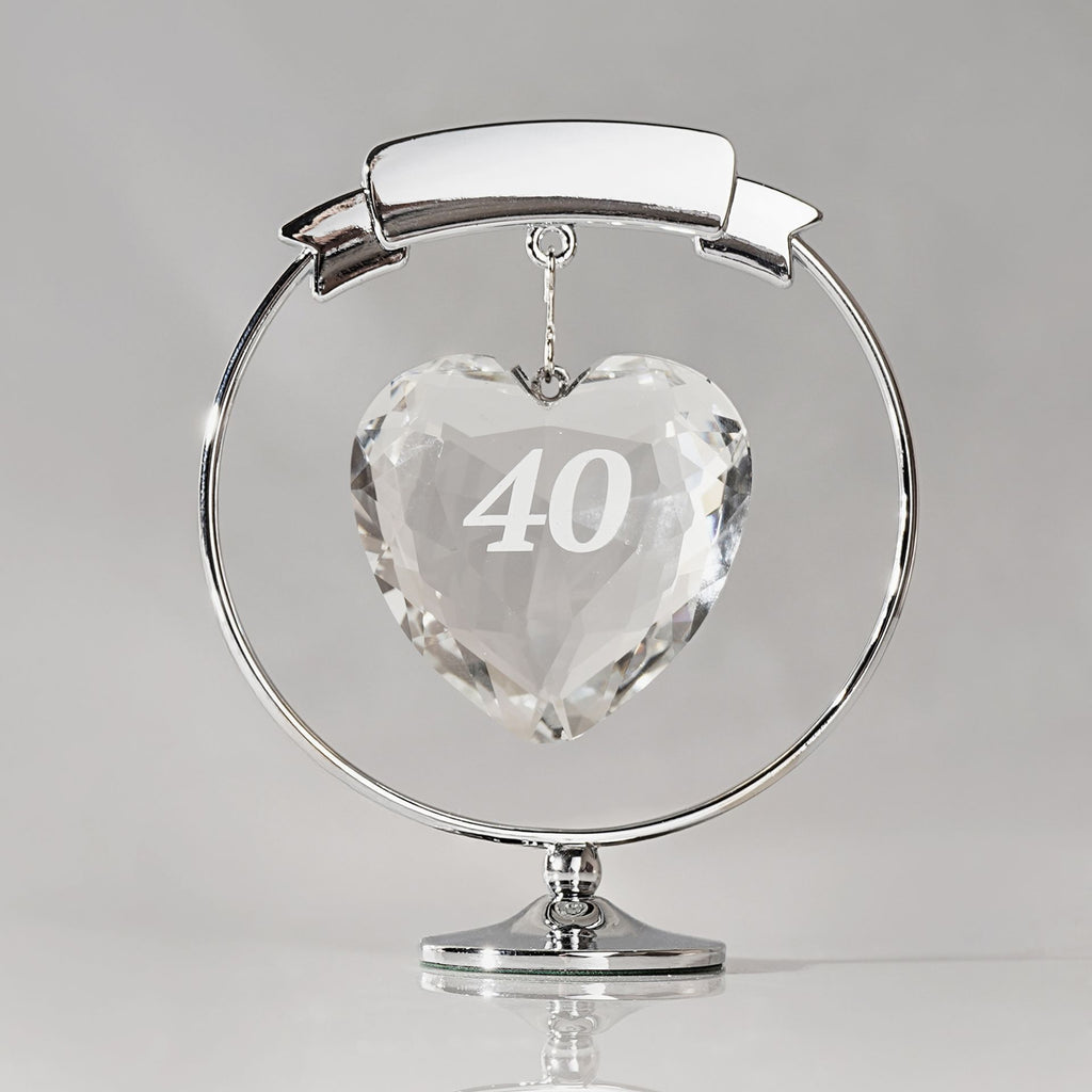 Each piece features a beautifully faceted crystal heart suspended in a polished chrome frame, with milestone numbers delicately engraved - from 21 to 90. Whether it’s a birthday or anniversary, these elegant ornaments are perfect for gifting or as a keepsake.
