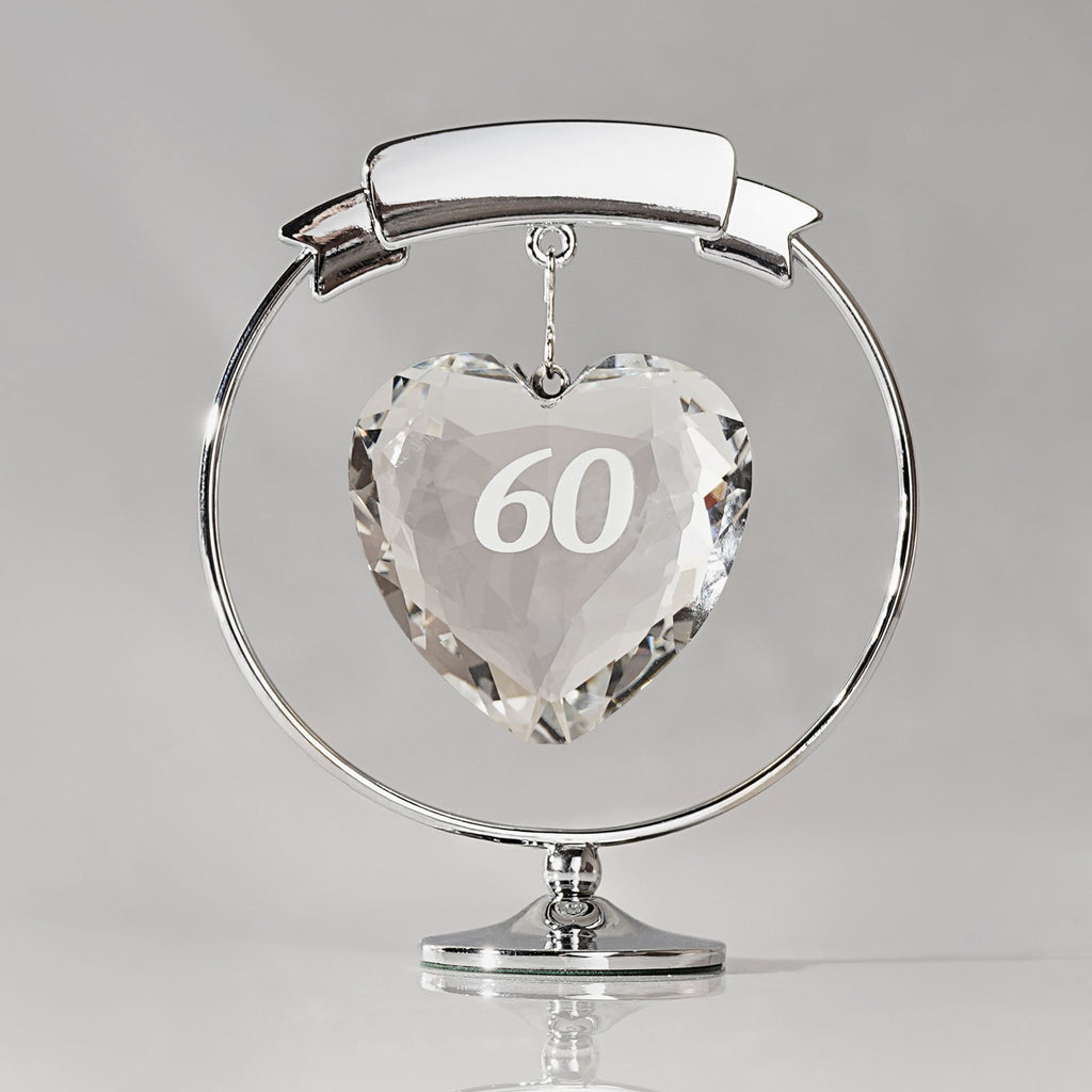 Each piece features a beautifully faceted crystal heart suspended in a polished chrome frame, with milestone numbers delicately engraved - from 21 to 90. Whether it’s a birthday or anniversary, these elegant ornaments are perfect for gifting or as a keepsake.