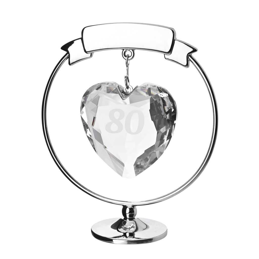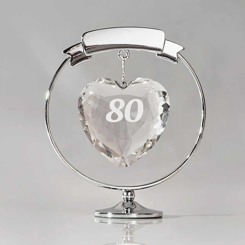 Each piece features a beautifully faceted crystal heart suspended in a polished chrome frame, with milestone numbers delicately engraved - from 21 to 90. Whether it’s a birthday or anniversary, these elegant ornaments are perfect for gifting or as a keepsake.