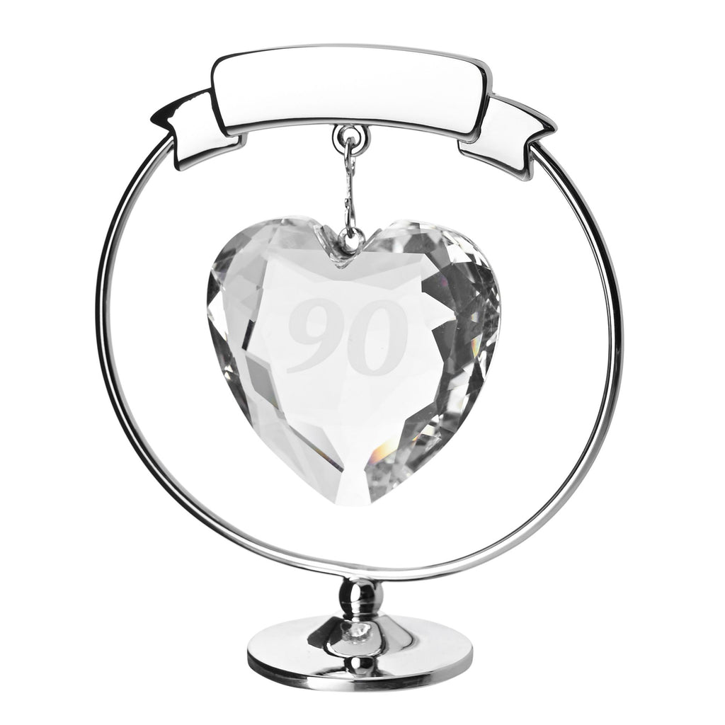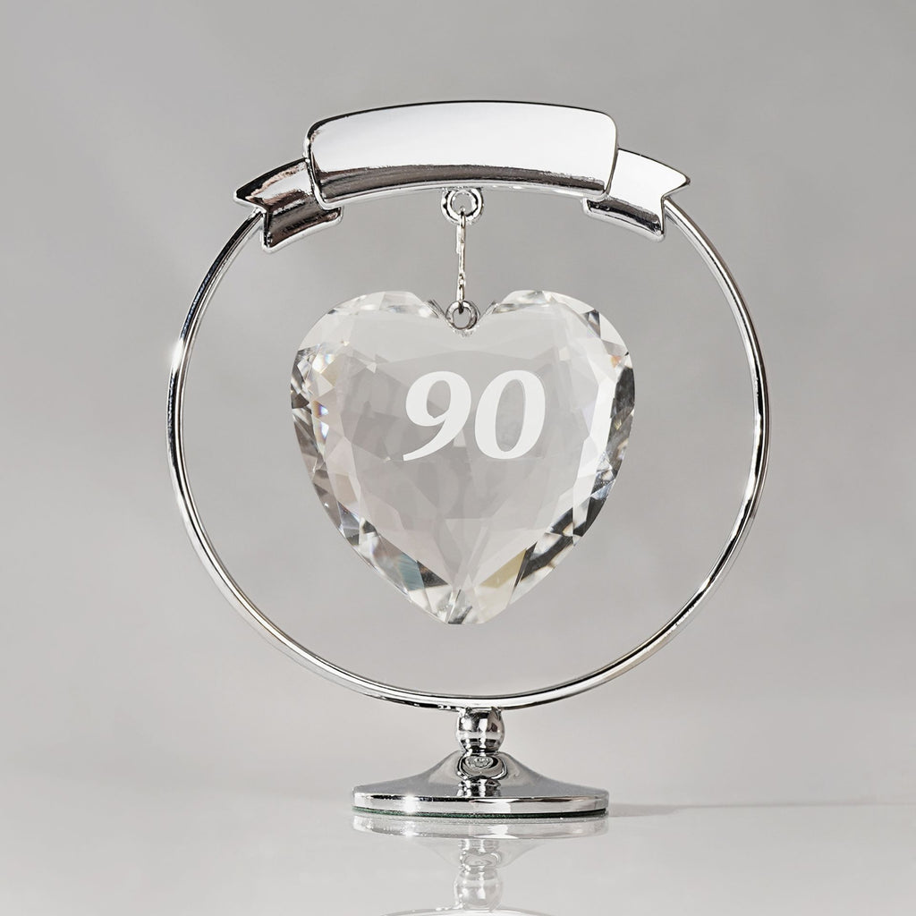 Each piece features a beautifully faceted crystal heart suspended in a polished chrome frame, with milestone numbers delicately engraved - from 21 to 90. Whether it’s a birthday or anniversary, these elegant ornaments are perfect for gifting or as a keepsake.