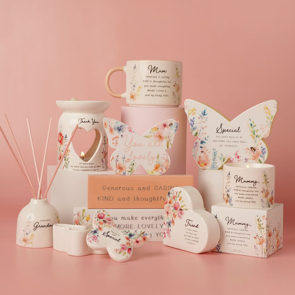 With its bold butterfly silhouette, soft floral prints, and short uplifting message, it’s a versatile piece that fits seamlessly on shelves, desks, or mantelpieces. A go-to gifting choice for birthdays, thank-yous, or spontaneous gestures, it adds instant colour and personality to any space.