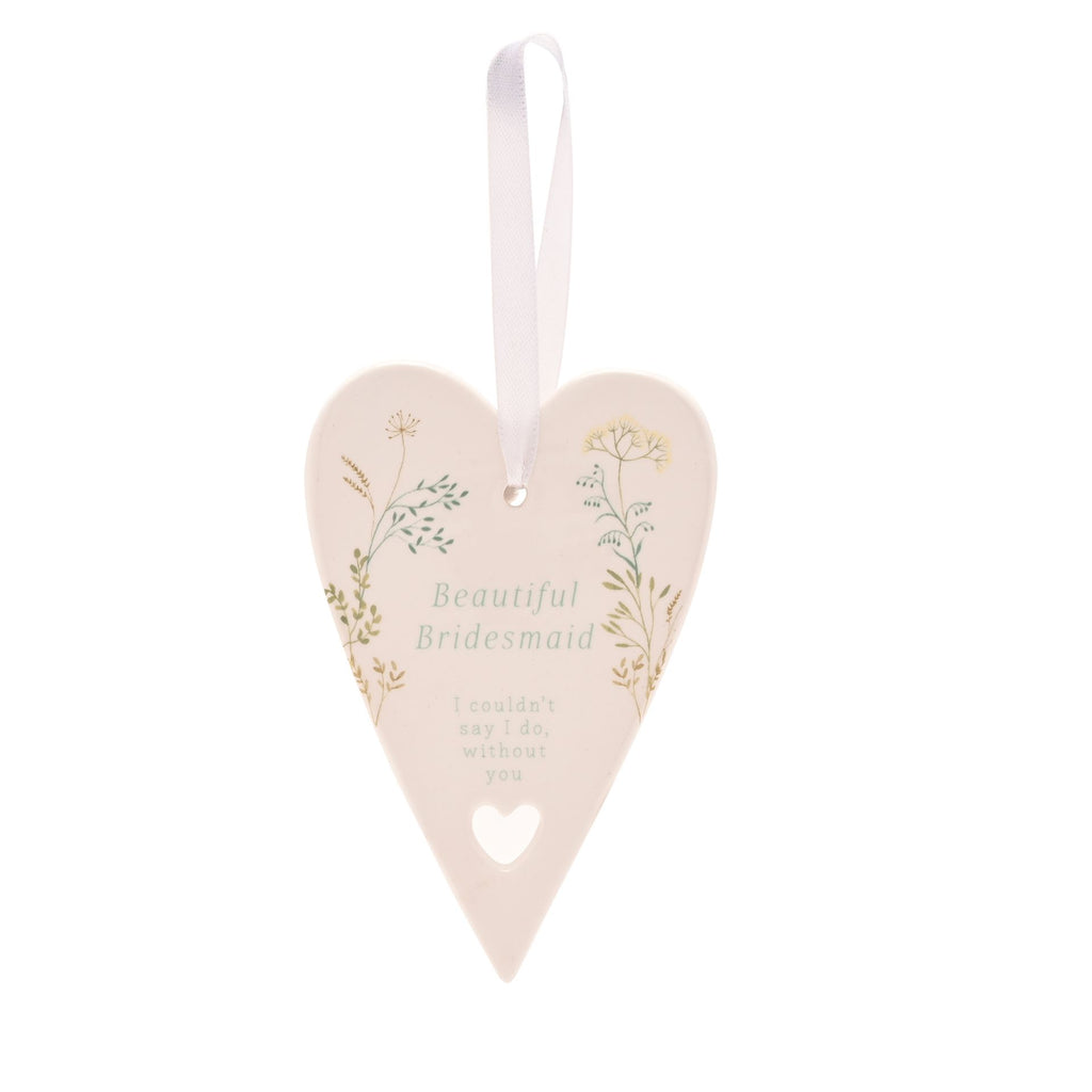 Show your apprecation with the Love Story Ceramic Heart - Bridesmaid. This delightful keepsake features the phrase "Beautiful Bridesmaid", set on a heart-shaped hanging plaque, making it the perfect token of gratitude for a cherished friend.