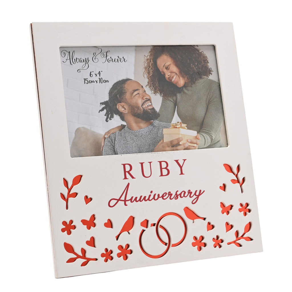 The Always & Forever Photo Frame 6 x 4ins - Ruby Anniversary is an elegant and thoughtful gift, perfect for commemorating a couple's 40th wedding anniversary.